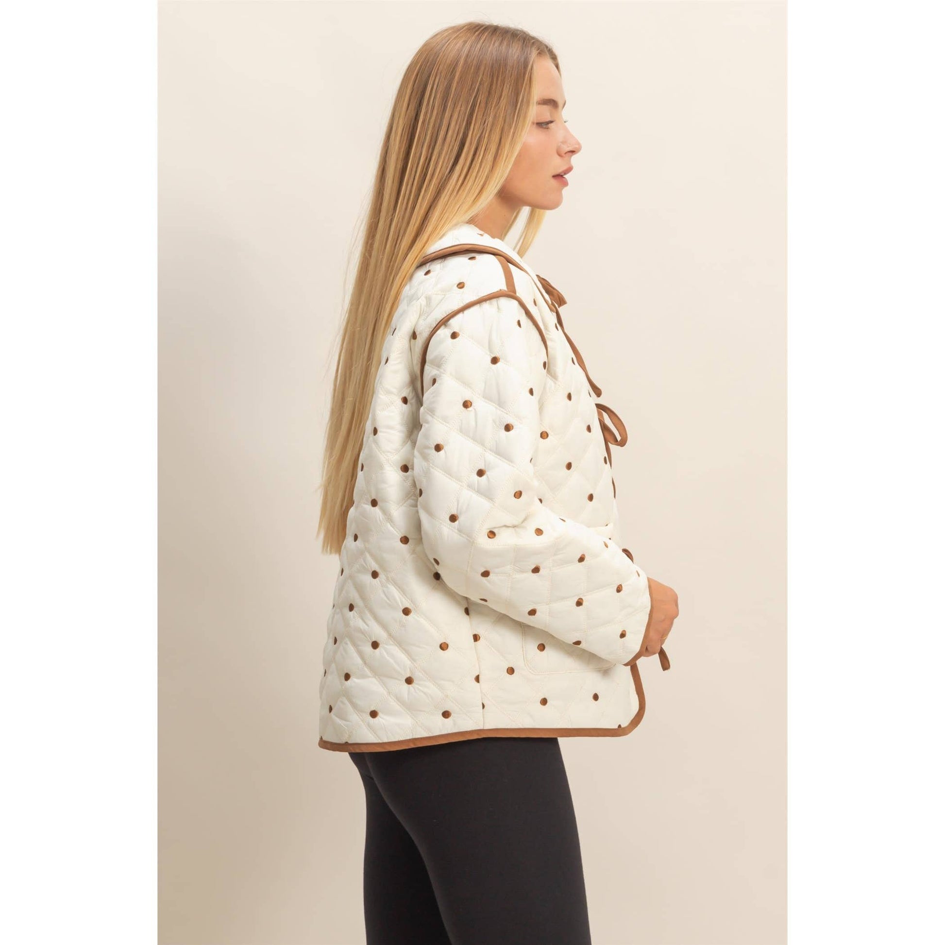 Polkadot Quilted Front Tie Jacket